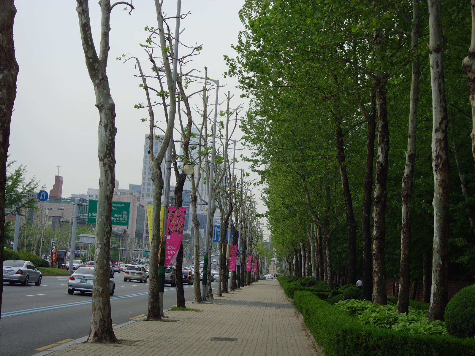 서울의 가로수 중 두번째로 많은 수종(31.5%)인 플라타너스가 최근 수년간 지나친 가지치기 작업으로 ‘그늘’이 사라진 전봇대 같은 모습이 되어, 기온 상승으로 여름 같은 요즈음 날씨에 거리를 다니는 시민들의 불만이 고조되고 있으며 도시미관을 해치고 있다. 가로수 수종으로서 플라타너스의 단점은 타 수종에 비해 성장속도 빨라 도심 상가의 간판이나 건물을 가리고, 봄철에는 꽃가루가 날려 비염과 알레르기 등을 유발한다는 점이다. 이 때문에 민원이 발생한 것도 사실이지만 버드나무에 비해 그 피해는 적으며 오히려 속성수로서 신도시의 가로경관을 풍성하게 하는 긍정적 요소가 많았다.