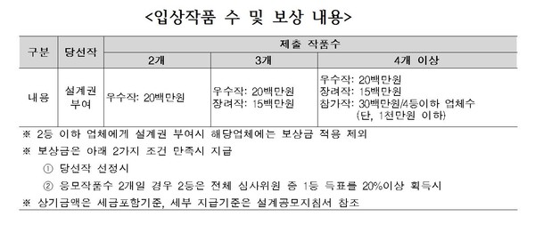 응모분야는 토목·도시와 건축 2개다. 그중 건축 분야는 건축사법에 의한 건축사사무소를 등록한 업체면 공모에 참여할 수 있다. 공동 도급의 경우 건축 분야에서는 공동이행방식과 분담이행방식(면허보완)이 허용되며, 최대 구성원 수는 분담이행방식을 포함해 5인 이내다. 당선팀에는 입체적 도시공간계획과 지구계획 용역 수행권이 부여된다.