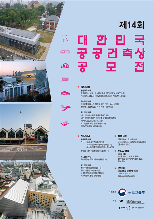 국토교통부가 ‘2020 대한민국 공공건축상(이하, 공공건축상)’을 공모한다.