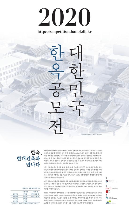 접수는 8월 28일부터 9월 1일까지 5일 동안 누리집을 통해 진행된다. 최종 당선작은 10월 경 선정할 예정이다. 자세한 사항은 대한민국 한옥공모전 누리집(http://competition.hanokdb.kr/)을 통해 확인할 수 있다.