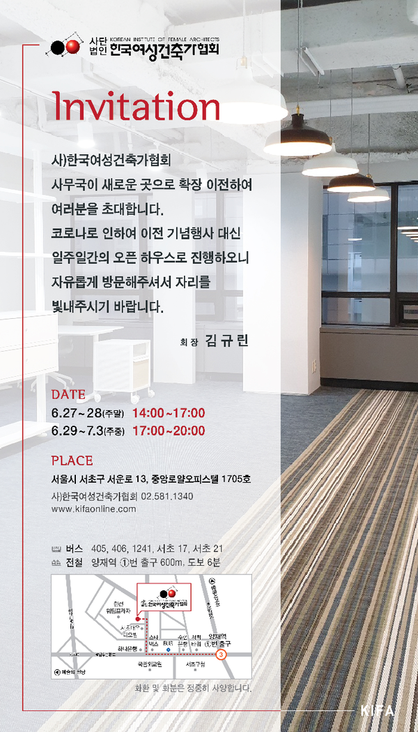 한국여성건축가협회가 역삼동에서 서초동으로 사무국을 확장 이전했다고 22일 밝혔다.