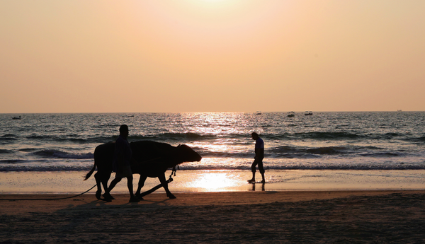인디아 남서부 고아(Goa) 베나울림 해변. 썬 베드에 누워 맥주를 마시며 책을 읽다가 옆을 보니 견공이 누워 낮잠을 잔다. 여기가 인도라는 걸 새삼 느낀다. 일광욕을 즐기며 해가 뉘엿뉘엿 질 무렵까지 바닷가에 머무니 소와 함께 거니는 남자의 실루엣이 보인다. 우공과 해변을 거니는 이와 혼자 산책하는 이가 어우러진 해변 풍경이 고즈넉하다. 평화롭다.