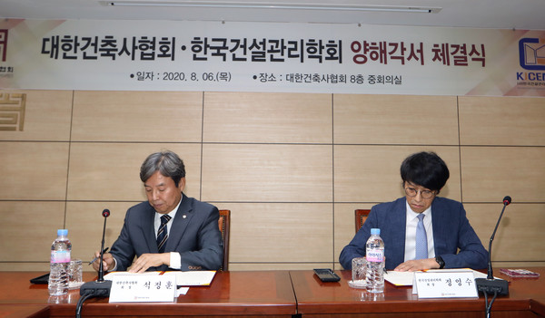 대한건축사협회와 한국건설관리학회가 건축서비스산업과 건설산업 선진화를 위한 MOU를 체결했다.