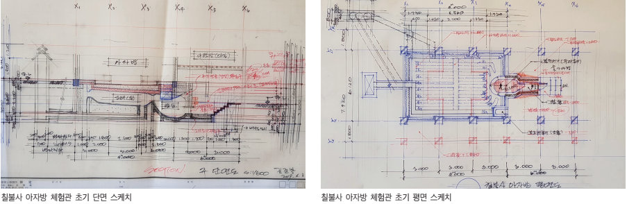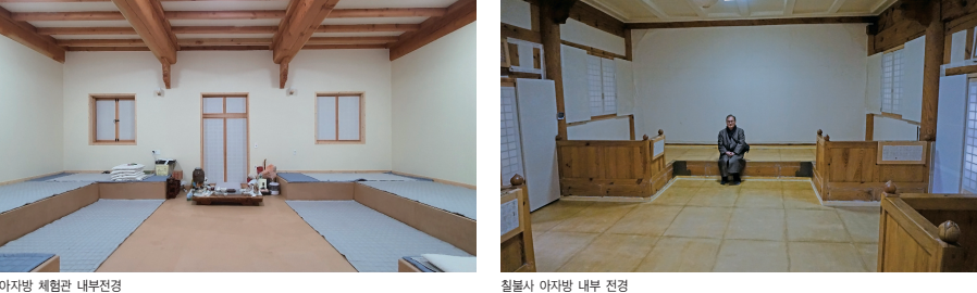 그래서 먼저 아자방 체험관을 기존 아자방의 원형과 같은 1:1의 비율로 발굴내용을 기초로 건립해 충분히 온돌의 효과를 검증한 후에 그 성능이 확인되면 새롭게 복원되는 아자방의 아궁이 등 훼손되고 멸실된 부분을 복원 할 때 적용하는 근거로 삼기로 계획 했다.
