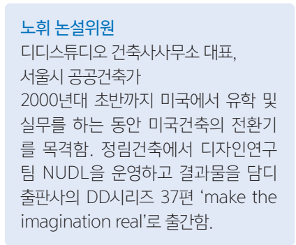 결과적으로 전세제도와 아파트가 보증해주는 ‘확보된 안전자산’은 설계·공사 생태계를 유지시켜주는 중요한 시스템이 되어 있다. 이 점에서 우리는 기회를 보아야 한다. 비생산적인 부동산 시장으로의 자본집중 현상, 저급한 설계비와 공사비 문제 등이 하루아침에 해결되지 않는다면 오히려 역발상으로 우리의 시스템이 가진 장점을 살리는 방식을 찾아내어야 한다. 이에 대한 실마리를 찾기 위해서 미국의 대형 건축사사무소의 성장과 이탈리아의 장인기업의 성장을 비교해 보겠다.