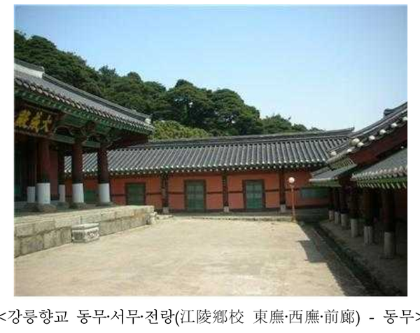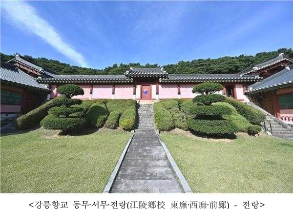 강릉향교 도무‧서무‧전랑은 19673년에 보물로 지정된 강릉향고 대성전의 일곽에 해당하는 건물들로 이전이나 이축 없이 건립 당시의 제자리를 고수하고 있고, 대성전과 함께 향교 건축의 전형을 담고 있다.