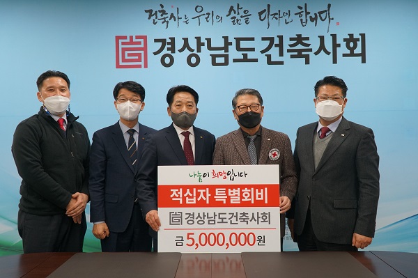 경상남도건축사회는 지난 11월 24일부터 12월 23일까지 대한적십자사 경상남도지사, 초록우산 어린이재단 등 자원봉사단체에 총 1,000만 원의 성금을 기탁했다고 밝혔다. 김재석 경남건축사회장은 “경남건축사회 회원들의 정성이 어려운 이웃에게 잘 전달되길 바란다”면서, 코로나19로 어려움을 겪고 있는 도민들에 대한 응원의 메시지도 함께 전했다. 한편, 경남건축사회는 매년 교육발전기금 기탁과 사회봉사활동 등 꾸준한 봉사활동에 앞장서고 있다. 특히 2020년에는 정기총회를 위임총회로 개최하면서 절감한 총회비용 2,000만 원을 코로나19 성금으로 기탁하면서 대한적십자사 경남지사 회원유공장 최고명예장을 수상하기도 했다.