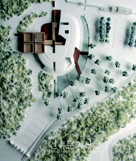또한 현상설계 시 작성된 것으로 투시도와 완공된 사진을 비교, 실시설계를 진행하면서 변경된 내용을 알 수 없는 독자의 판단에 혼란을 가중했다. 실제로 <사진1,2>를 통해 현상설계 당시의 디자인과 실시설계 완료 후의 디자인은 상당히 변화됐음을 알 수 있다. 그런데도 실시설계 진행 중의 디자인 변경에 대한 언급 없이 설계와 감리를 언급, 공사가 진행되면서 많은 부분이 변경된 것으로 독자들이 단정할 수 있는 단초를 제공했다. 이는 기사작성 시 사실 확인의 의무를 다하지 못한 이 기자의 실책이다.