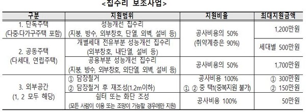 주택성능개선지원구역 내 노후주택에 대한 시공상담, 입면디자인, 집수리 비용 지원