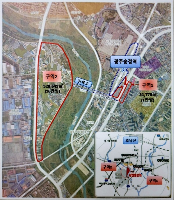 광주 ‘송정역KTX 지역경제거점형 투자선도지구’는 모두 56만427제곱미터 규모로 조성된다.