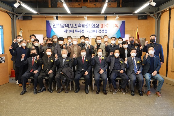 인천광역시건축사회는 3월 30일 인천건축사회관 회의실에서 제19대 류재경 회장이 이임하고, 제20대 김장섭 신임회장이 취임하는 이·취임식을 개최했다고 밝혔다. 이날 행사는 역대회장들을 비롯해 전·현직 임원 약 30여 명이 참석한 가운데 코로나19 방역수칙을 준수하면서 진행됐다.