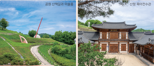 산청 국제 조각공원 언덕 입구에 작은 규모의 주차장 앞에 목아 전수관이 있다. 산청 목아 전수관은 ‘국가무형문화재 제108호 목조각장 목아 박찬수’의 기능과 정신을 통해 전통 목조각의 맥을 이어나가기 위해 2011년 10월 28일 건립되었다. 국가무형문화재 목조각장 박찬수의 예술혼이 가득 담긴 목아 전수관은 교육뿐만 아니라 전시, 체험활동 등을 통해 전통문화의 역사와 미래를 느낄 수 있는 복합문화공간이다.