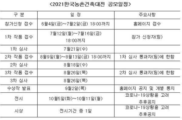 한국농어촌공사, 2021한국농촌건축대전·2021한국농촌계획대전 작품공모
