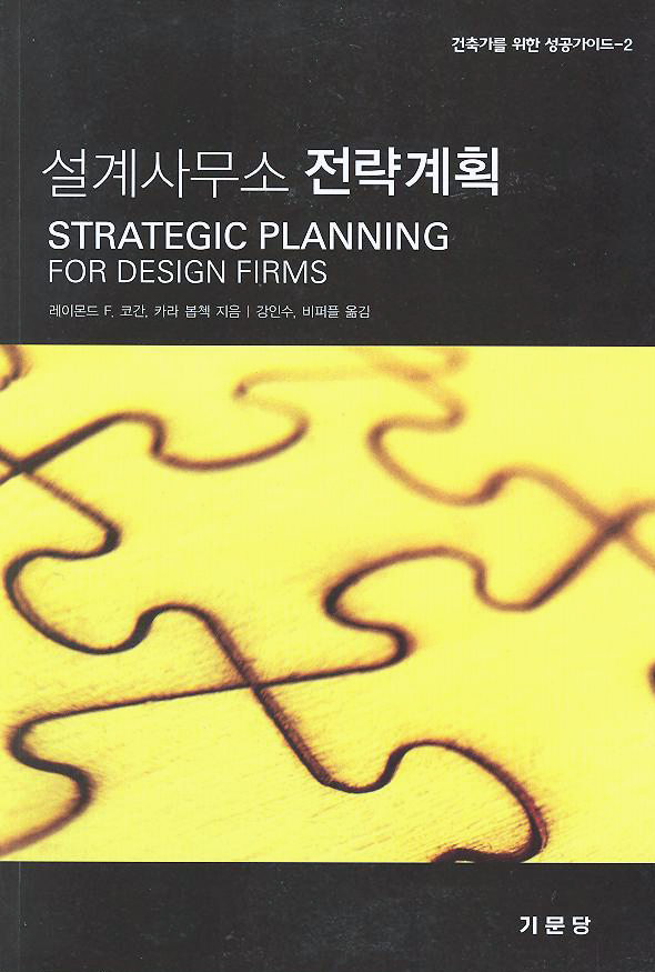 “설계사무소의 전략계획”은 일반경영서적이 아닌 건축사사무소를 비롯한 엔지니어링 등 인적작업이 중심이 되는 회사의 전략과 전술을 체계적으로 기술한 전문경영서적으로서, 건축·엔지니어링의 전략기획 및 경영컨설팅 전문가인 레이몬드 F와 코간이(AIA)이 공동집필한 책을 (주)디에이그룹의 기획본부장으로 근무하고 있는 강인수씨와 건설기업 전문컨설팅사인 비퍼플이 공동 번역했으며, 역자 강인수씨의 “건축제안의 성공전략-클라이언트에 집중하라” 에 이은 두 번째 번역서이다.