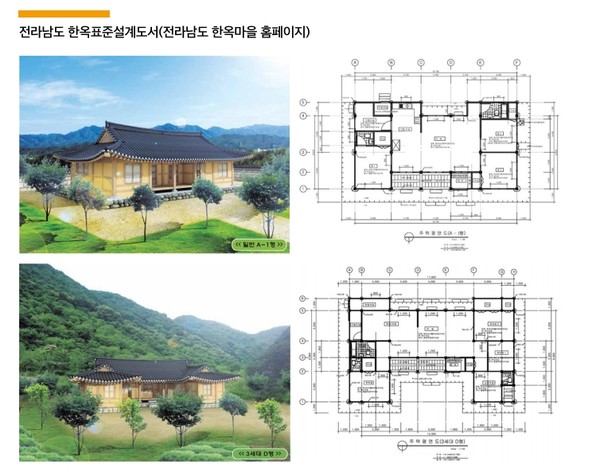 전라남도와 경상북도는 경제성·실용성·전통성을 갖춘 신뢰할 수 있는 도면을 기반으로 한옥 보급·확산을 도모하고자 표준설계도서를 개발, 공개했다.