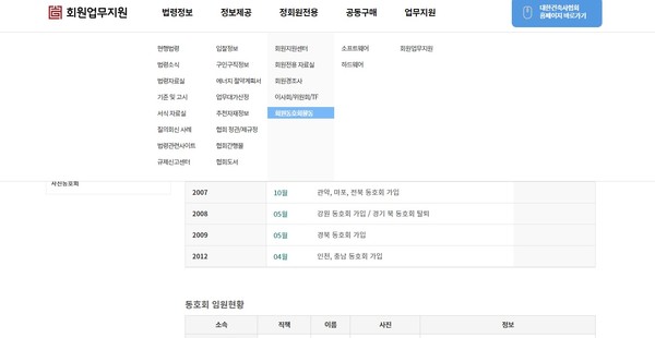 회원동호회 게시판은 협회 회원업무지원 홈페이지(https://kirahub.kira.or.kr) 내 정회원 전용 메뉴에서 확인, 접속할 수 있다. 활성화된 동호회별 게시판을 통해 동호회 행사 계획과 결과, 의견에 대한 확인 또는 공유가 가능하다.