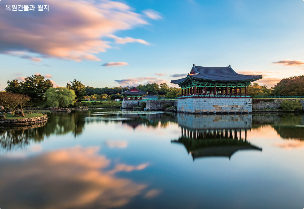 현재에 이르러 동궁과 월지는 경주 야경의 명소로 달이 비치는 연못이 매우 인상적이다. 동서 길이 200m, 남북 길이 180m인 월지는 남서쪽의 둘레는 직선인데 반해 북동쪽은 구불구불한 곡선으로 되어 있다. 이 때문에 어느 곳에서도 못의 전체 모습을 한눈에 볼 수 없어 끝을 알 수 없는 바다와 같은 느낌이 들게 했다. 연회장소로 쓰인 ‘임해전(臨海殿)’은 바다를 내려다보는 전각이라는 뜻으로 연못 월지의 조경이 바다를 표현했다는 것을 짐작할 수 있다.