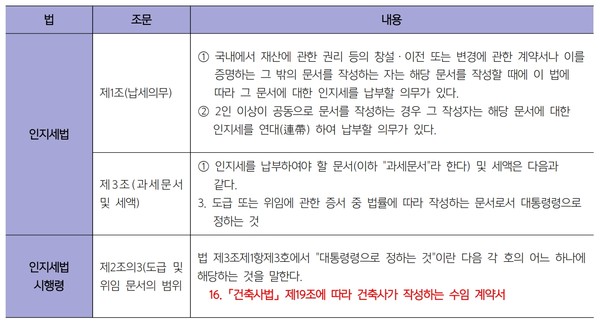 ◆작성된 계약서마다 각각 인지세 부과, 건축사와 건축주 연대 납세 의무 가져