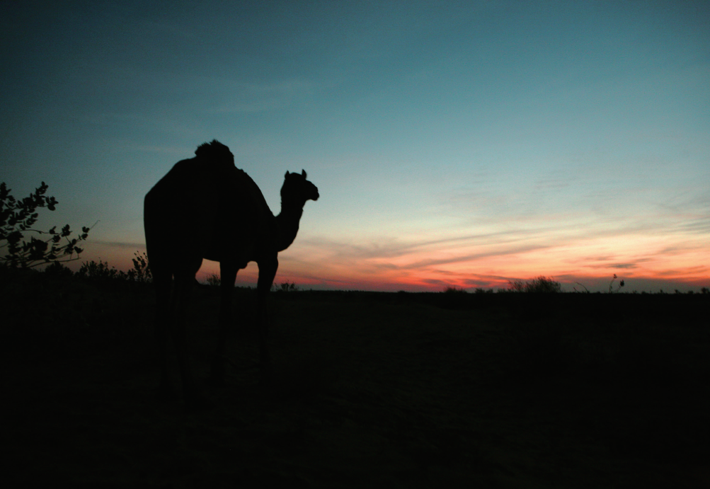 자이살메르의 낙타를 처음 본 순간 큼직한 두 눈과 속눈썹이 우리 나라의 소를 닮았다는 생각을 했다. 잠시 쉬면서 먹이를 주는데, 건초더미를 앞에 두고 마주 앉아 한 녀석이 먹고 있으면 다른 녀석은 기다린다. 어떤 가르침도 받지 않았을진대 양보를 아는 걸까... 다시 사람을 태우고 묵묵히 사막을 걷는 낙타. 해질녘 외롭게 서 있는 낙타의 실루엣이 묵직한 울림을 준다.