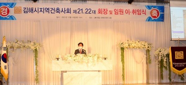 김해지역건축사회는 지난 12월 14일 김해 JW웨딩컨벤션센터에서 제21·22대 회장 및 임원 이취임식을 개최했다.