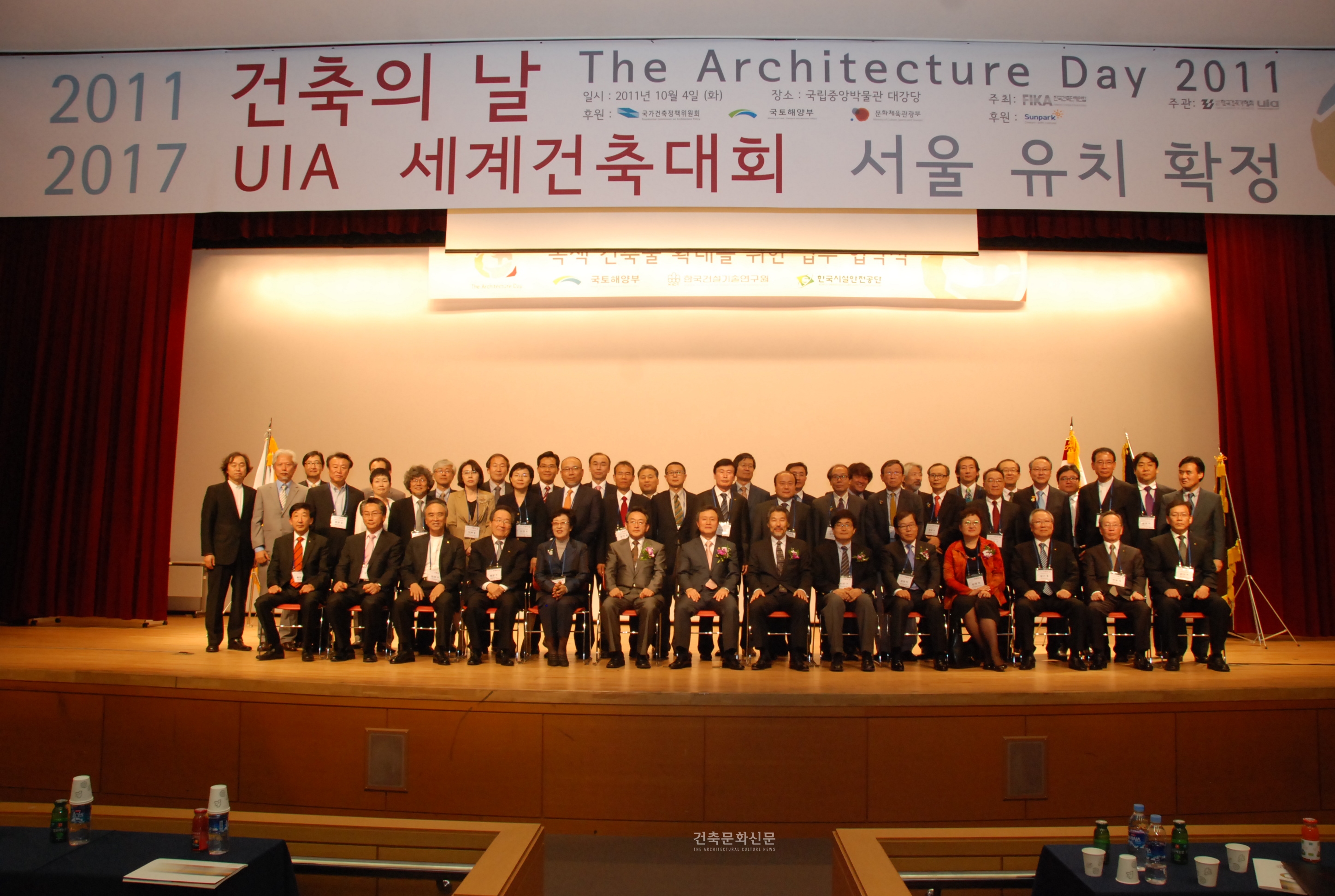 이날 행사에는 권도엽 국토해양부 장관, 이상정 국가건축정책위원장, 대한건축사협회 강성익 회장을 비롯한 건축계인사 등 500여명 참석한 가운데 열렸다. 특히 올 해는 지난 10월 1일 ‘2017 UIA 서울 세계건축대회’ 유치 확정을 축하하는 의미 있는 행사가 되기도 했다.