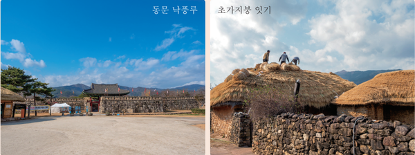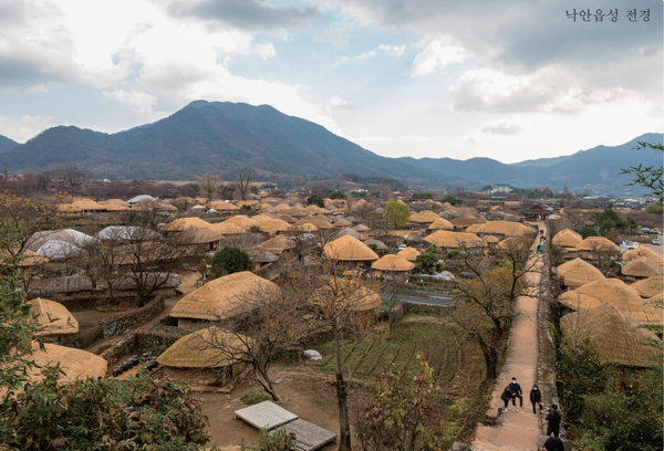 경주 양동마을이나 안동 하회마을처럼 집성촌을 이뤄 그 맥을 잇는 민속마을은 더러 있지만 성(城) 안 마을의 풍속과 전통을 600년 동안 지켜온 곳은 낙안읍성 민속마을이 우리나라에서 유일하다. 번듯한 기와집 한 채 없지만 매년 100만 명 이상의 관광객이 찾아오는 건 그 때문이다. 성곽길을 따라 성벽 위를 걷다 보면 작은 초가와 마을의 소소한 풍경들이 마치 조선시대로 돌아간 듯한 느낌을 준다. 서문에서 남문 방향으로 성곽길을 걷다 보면 높은 성곽에서 마을 전체의 전경을 볼 수 있다.