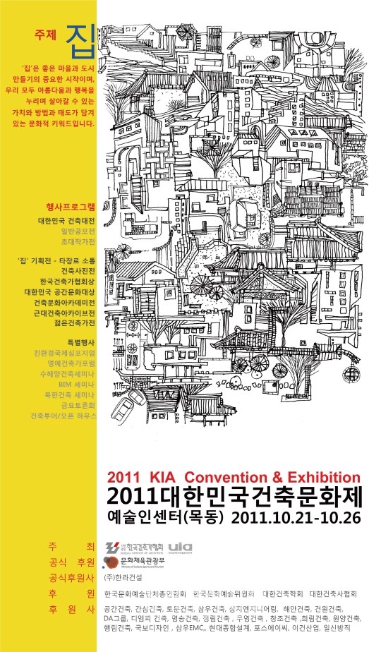 문화체육관광부와(사)한국건축가협회가 주최하는 ‘2011 대한민국건축문화제’가 11월 11일부터 16일까지 6일간 목동 예술인센터에서 개최됐다. 이번 행사는 인류의 삶과 가장 밀접한 ‘집’을 주제로 하여 일반 전시 및 특별 전시, 각종 세미나 및 체험 프로그램 등으로 진행됐다.