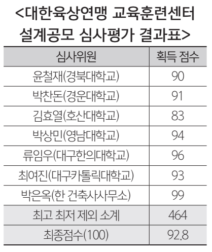 최여진 심사위원(대구가톨릭대학교)은 “청소년수련관과 운동장 등 주변 시설과의 연계성이 높고, 보차분리계획이 우수했다”면서 “편복도, 중복도의 혼용배치로 경제성과 쾌적성을 높였다”고 밝히며 93점을 줬다.