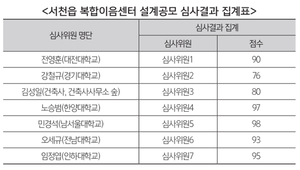 4월 15일 충남 서천군에 따르면 최근 이 설계공모에 대한 심사결과 원건축사사무소.주(대표 원현성 건축사)가 총점 454점(최저, 최고 제외), 평점 91점을 획득해 당선의 영예를 안았다.