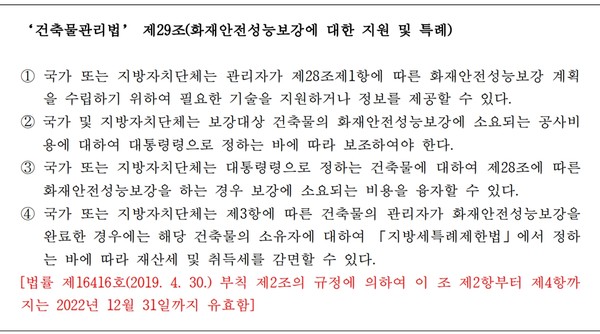 정부가 2019년부터 추진해 온 ‘화재안전성능보강 지원사업’이 올해 말로 종료된다.