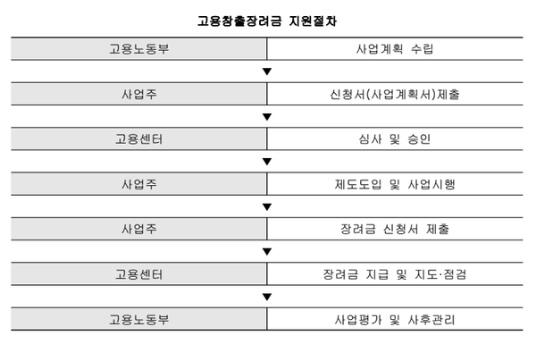 우선 고용촉진장려금은 고용촉진장려금 지원대상 취업지원프로그램 이수자, 중증장애인, 가족부양의 책임이 있는 여성실업자, 섬지역 거주자 등 구직등록이 유효한 실업자를 고용하면 지원받는다. 신규고용 근로자 수 1인당 월 30~60만 원까지 지원되며, 사업주가 지급한 임금 80%한도로 연간 총액은 720만 원이다.