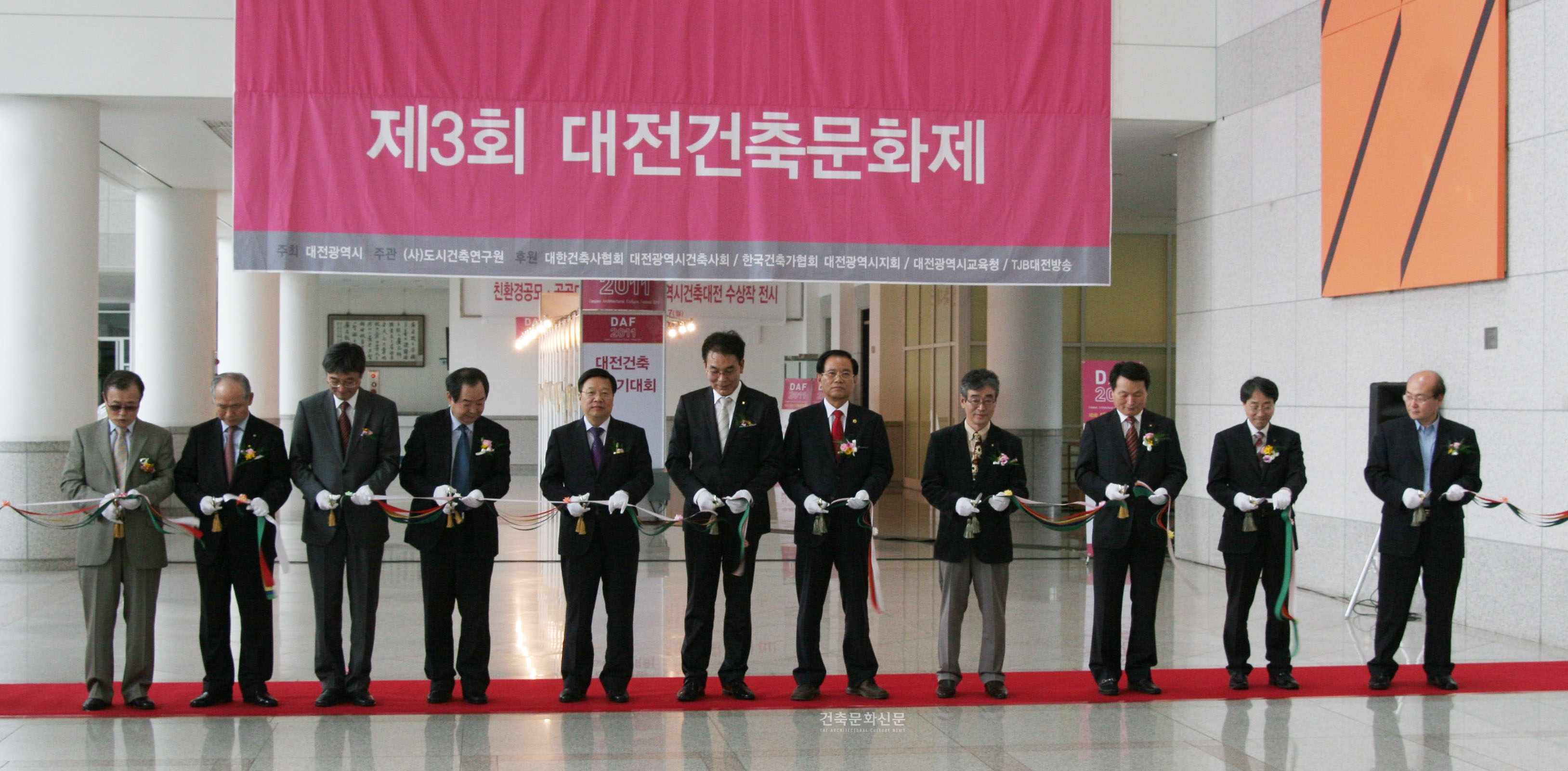 개막식에는 이성희 대전광역시건축사회장의 축사, 염홍철 시장, 김신호 교육감의 격려사, 대한건축사협회 강석익 회장의 격려사가 있었으며, 대전건축문화제 추진단장인 김용각 건축사의 행사소개와 함께 권선택 국회의원 및 이상태 시의장 등 관련 외부 인사들이 참석해 개막을 축하했다.