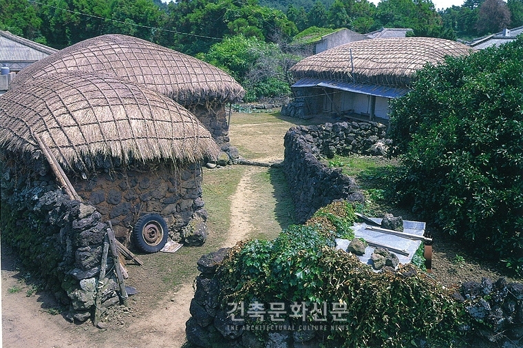 이것들은 모두 사랑채 앞에도 사랑마당을 두는 양반집[動宅]인 경우이고 사랑마당을 따로 둘 수 없는 서민들의 집[靜宅]에서는 전혀 다른 방식을 보인다.(정택이니 동택이니 하는 것은 양택론(陽宅論)에서 말하는 이론이므로, 다음에 논하기로 한다) 북제주의 집인 경우, 안거리는 지세를 따라 북향하여 배치되지만 밖거리는 마당을 마주하고 남향하여 두[二]자 배치를 하는 경우가 많다. 물론 안거리 뒤에는 안튀(뒤란)란 공간을 만들지만 나무를 둘레로만 심어서 볕이 안으로 들어올 수 있도록 고려한다. 반대로 남제주의 경우는, 지세에 맞춰 안거리가 남향을 하게 되면 밖거리는 동향이나 서향을 할 수 있도록 마당을 중심으로 ㄱ자로 배치한다. 사랑채 앞에 별도의 사랑마당을 마련할 수 없기 때문이다.