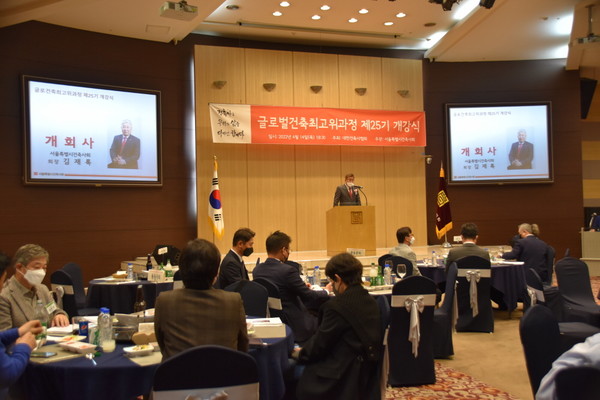 서울특별시건축사회 글로벌건축최고위과정 제25기 개강식이 4월 14일 저녁 건축사회관 1층 대강당에서 개최됐다.