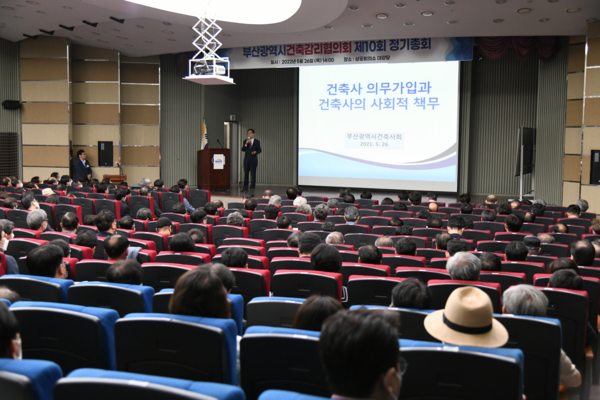부산광역시건축사회는 5월 26일 ‘건축사 의무가입과 건축사의 사회적 책무’를 주제로 ‘2022년 제1회 건축사 윤리교육’을 실시했다. 부산상공회의소 1층 대강당에서 실시된 윤리교육은 신설된 ‘건축사 윤리·조사위원회’ 위원장을 역임하고 있는 김경만 대한건축사협회 부회장이 강사로 초빙되었으며, 약 1시간 가량 진행됐다.