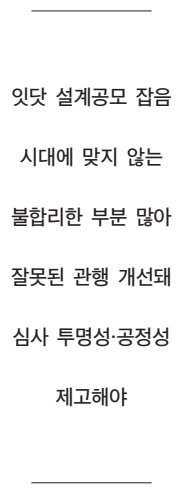 근대 건축사 거장의 시대를 지난 후 현대건축은 팀이 이끄는 건축디자인 시대로 변모했다. 건축 교육, 출판, 컴퓨터프로그램, 재료, 신기술, 기획부터 설계·공사의 정보화에 따른 기술발전이 건축설계에 미치는 영향은 갈수록 커지고 있다. 이러한 정부 기술, 디지털 시대에 이뤄지는 작금의 건축 설계공모 심사가 과연 시대에 어울리는지 의문이다. 시대에 맞지 않는 불합리한 부분이 많다고 생각하기 때문이다. 건축 설계공모와 관련한 잘못된 관행들이 개선되어 가장 좋은 계획안, 작품이 선정되기를 바란다.