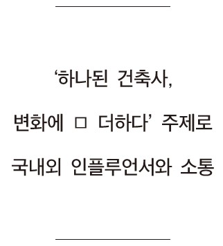 아울러 ‘글로벌 시대의 지역 건축의 새로운 탐색과 지역 건축사의 활동’을 주제로 제주를 대표하는 건축사로서 제주특별자치도건축사회장을 역임한 ▲김석윤 건축사(김건축 건축사사무소), 건축사학자이자 덕수궁 석조전과 명동성당 보수를 맡았던 근대건축 복원 전문가인 ▲김종헌 배재대학교 교수, 제주건축의 역사성에 집중하며 건축학자로서 목소리는 내고 있는 ▲김태일 제주대학교 교수, 제주특별자치도 제주건축연구위원장을 맡고 있는 양성필 건축사(아키제주 건축사사무소)의 강연이 9월 2일 준비돼 있다.