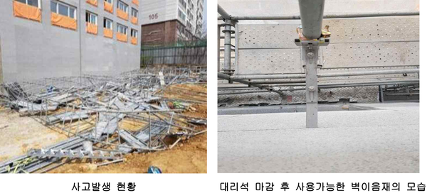 원주지방국토관리청은 “산업안전보건기준에 관한 규칙 제57조에 따라 벽이음 철물은 가능하면 가장 나중에 해체하고, 필요에 따라서는 보조장치를 한 후에 해체해야 한다”고 했다.