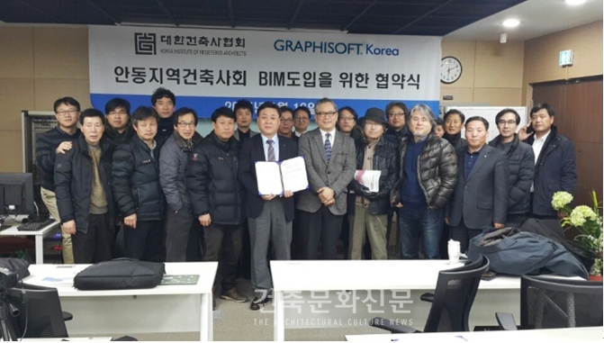 안동지역건축사회는 지난 1월 16일 그라피소프트코리아와 업무협약을 갖고 지역건축사들 전원이 예외없이 3D Modeling 및 도면화 기술을 습득하고 활용할 수 있도록 지속적인 교육과 라이브러리 및 애드온개발지원, 기타 기술지원을 받을 예정이다.
