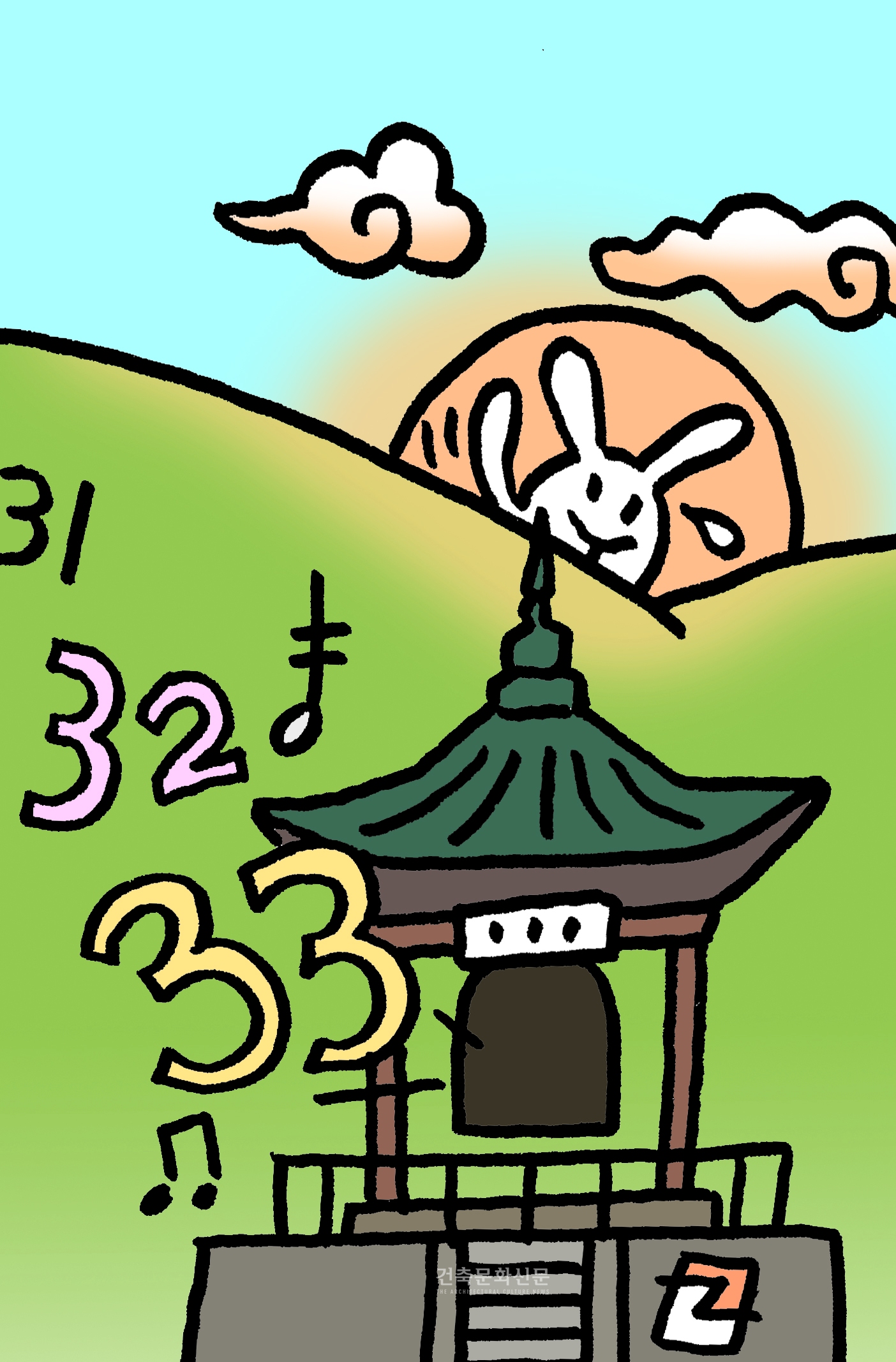 ‘제야(除夜)’란 단어는 음력이 제격이지만 이젠 양력으로도 어색하지 않다. 서양에서는 ‘New year's Eve’라 하여 이 날을 즐기며 자정에는 Watch-Night bell을 울리며 새해를 경축한다. 한국은 서른세 번을 치는 보신각의 타종행사가 TV를 통해 전국을 중계되면서 제야를 보내며 새해를 맞는 전통으로 굳어지고 있으며 외국관광객의 주요 볼거리로 등장하였다. 이들이 서른세 번의 심오한 의미를 알면 또 다른 감흥을 느낄 것이다. ▲태조는 한양으로 천도한 후 종루를 설치하고 새벽인 5경 3점에 통금해제와 성문을 여는 파루(罷漏)로 서른세 번의 종을 치게 하고, 초저녁인 1경 3점에는 통금과 성문을 닫는 인정(人定)으로 스물여덟번의 종을 치게 하였다. 한국은 중국과 더불어 예부터 하늘의 별자리를 28수(宿)로 나누었다. 따라서 별이 뜨는 저녁시간에 이에 맞춰 스물여덟 번을 친 것은 백성들의 하루를 위로하고 편안한 잠자리, 시쳇말로 하늘나라 꿈을 잘 꾸라는 위로가 들어 있다고 본다. 이는 고종이 황제 즉위식 후 28수를 기로 만들어 의장에 사용한 것으로 천손의 자부심을 나타낸 것을 봐도 짐작할 수 있다. ▲새벽을 여는 파루의 33회 타종은 불교적 또는 민족적인 두 면의 해석이 있으나 그 연원은 불교로 봐야 한다. 불교는 천인(天人)들이 사는 도리천이 4방에 8개씩 32천으로 되어 있으며 중앙에 이를 모두 거느리는 제석천이 사는 선견성善見城이 있어 모두 33천이라 한다. 국조 단군의 할아버지인 환인천제가 사는 곳도 바로 선견성인데, 이는 삼국유사의 저자가 스님인 일연으로, 환인이 제석환인에서 빌어온 것임을 알 수 있다. 33천이 천국이요, 국조의 건국이념이 홍익인간 弘益人間 광명이세 光明以世를 실현하기 위한 것이니, 이를 위하여 아침을 깨우고 부지런히 직분을 다하라는 뜻으로 서른세 번을 치게 하였고, 그 전통을 제야의 종이 이어받은 것이다.