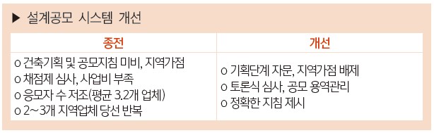 공모시스템 개선방향 ‘면밀한 건축기획 시행, 공모 공정·객관성 확보’ 핵심