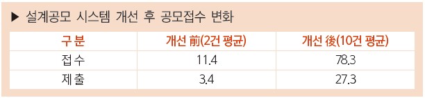 그 결과는 참여율 확대로 돌아왔다. 여러 건의 건축 설계공모에서 출품작이 기존보다 10배 이상 크게 증가했기 때문이다. 참여자를 대상으로 실시한 만족도 조사에서도 공정성·지침서 평가 면에서 “만족한다”는 결과를 얻었다.