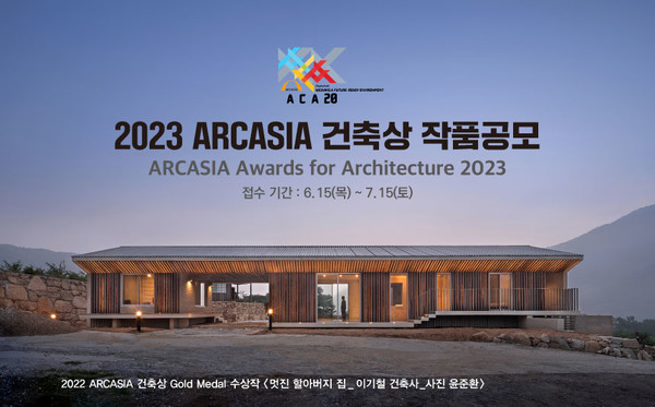 아시아건축사협의회(ARCASIA)가 아시아의 건축환경·기준 향상, 우수 건축사와 건축을 장려하기 위한 ‘2023 아시아건축사협의회(ARCASIA) 건축상’을 오는 6월 15일부터 7월 15일까지 공모한다.