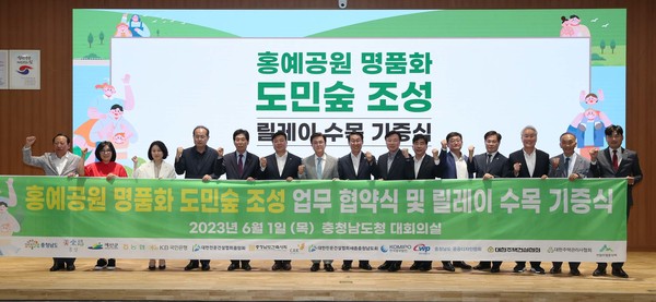 충청남도건축사회는 충남도가 내포신도시 홍예공원을 세계인이 찾는 공원으로 만들겠다는 프로젝트를 본격화함에 따라 농협, KB국민은행 등 13개 기관과 함께 6월 1일 수목 기증식을 함께 하는 등 적극 참여했다. 도민 참여 숲은 개인과 기관, 협회 등으로부터 헌수금을 받아 느티나무, 단풍나무, 참나무, 목련, 은행나무, 이팝나무 등 1,000그루를 홍예공원 곳곳에 식재한다는 계획이다.