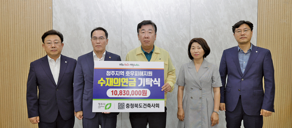 충청북도건축사회는 8월 9일 청주시청을 방문해 수재의연금 1,083만원을 기탁했다. 지난 7월 발생한 호우 피해로 충청북도는 특별재난지역으로 지정되는 등 피해가 집중됐다.