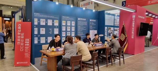 부산광역시건축사회가 9월 14일부터 나흘간 진행된 건축·인테리어 박람회 코리아빌드에 참가했다. 부산코리아빌드는 ㈜메쎄이상이 주최하는 부산 최대 규모의 건축 전시로, 설계-시공-유지관리까지 건축의 전 과정에 필요한 자재와 제품, 기술을 관람할 수 있는 건축 박람회다. 부산시건축사회는 홍보관 운영을 통해 부산시건축사회의 활동과 건축사의 역할, 건축설계 업무의 중요성 등을 알리고 시민을 대상으로 무료 건축 상담도 진행했다. 부산건축사회 소속 건축사들이 직접 건축과정과 절차, 법령 등의 궁금증을 해소해주고 건축 민원 상담을 제공해 홍보관을 찾는 시민들의 발길이 끊이지 않았다.