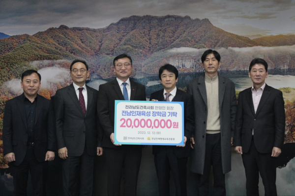 전남건축사회는 2021년부터 올해까지 전라남도 인재육성 장학금으로 총 6,000만 원을 기탁하고, 도내 5개 대학 건축학과 재학생을 대상으로 매년 400만원 의 장학금을 지원하는 등 지역인재 양성에 노력하고 있다.