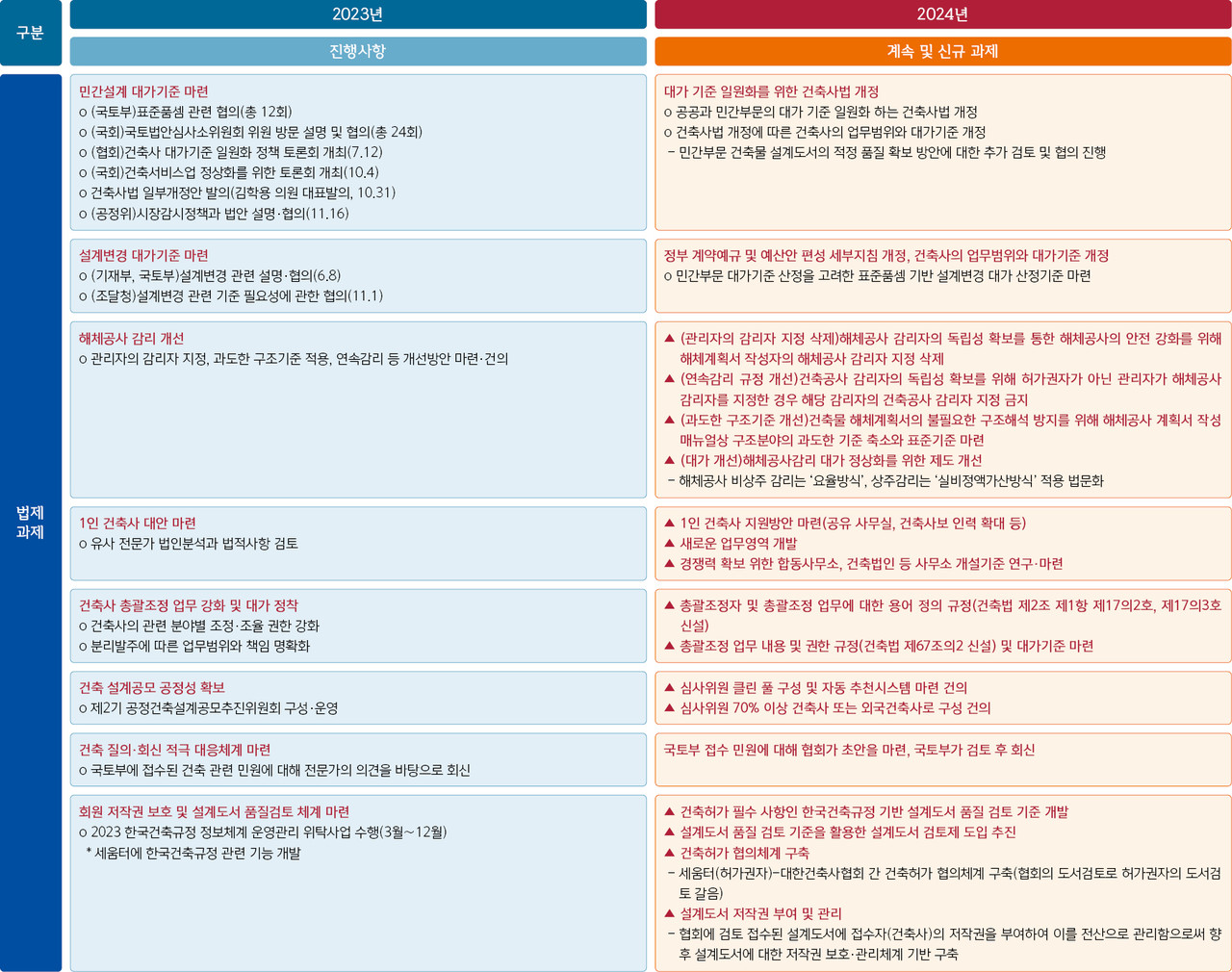 민간설계 대가기준 마련, 대가 현실화에 힘 쏟아