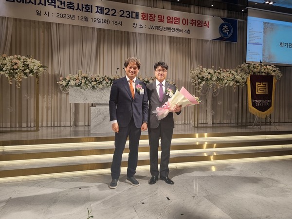 경상남도건축사회 김해시지역건축사회는 지난 12월 12일 내빈 120여명이 참석한 가운데 제22‧23대 회장 이‧취 임식을 진행했다. 제23대 회장으로 취임한 최민수 회장은 “김해시지역건축사회가 50년 역사를 넘어 새로운 100년을 향해 나아갈 수 있도록 건축사의 책임과 책무를 다하기 위해 최선을 다하겠다”고 포부를 밝혔다.