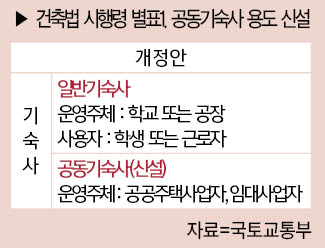개정안은 공공과 민간이 대규모 공유주거 서비스를 제공할 수 있도록 건축법 시행령에 ‘공동기숙사’ 용도를 신설하는 내용을 골자로 하고 있다. 기존에는 학교 또는 공장에서만 운영 가능했지만, 공공주택사업자를 비롯 민간임대사업자도 임대형기숙사를 운영할 수 있게 했으며, 건축법상 ‘공동기숙사’ 용도를 ‘기숙사’의 하위 세부 용도로 신설하고, 기존 ‘기숙사’ 용도는 ‘일반기숙사’로 명칭을 변경했다.